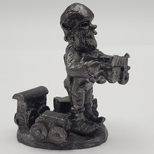 VINTAGE 1990 HUDSON PEWTER SANTA'S TOY WORKSHOP ELF WITH TOY TRAIN FIGURINE