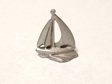 Vintage Handmade Pewter Sailboat In Ocean On Water Collectible Figurine Toy Boat