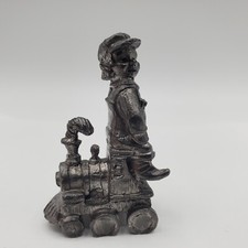 Michael Ricker Signed RB PEWTER Statue Elf Boy riding Train Toy Vintage Heavy