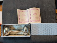WEB Silver Baby Rattle Stamped Pewter Dumbbell Original Box Vtg New Sealed