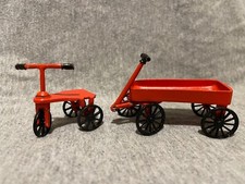 Vintage Hand Painted Lead Free Pewter Miniature Red Tricycle and Wagon