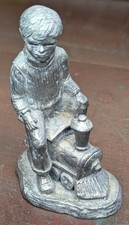 Michael Ricker Signed RB PEWTER Statue Ben Boy riding Train Toy Vintage 1985