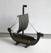 Vintage Norwegian Viking Longship Pewter Brass Sail Boat Toy Size