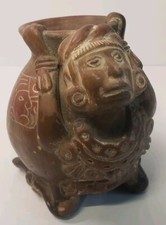 Antique Ancient Aztec Mayan Clay Pottery Hand Molded Figurine Vase Rare