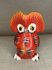 Vintage Mexico Folk Art Pottery 5” OWL coin BANK toy bird