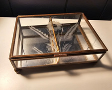 Vintage Mid Century Brass Etched Glass Bridge Playing Cards Display Holder Case