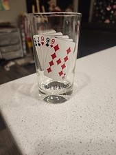 Vintage Poker Hand Glass Tumbler Three Of A Kind Playing Cards Bar Cup Highball