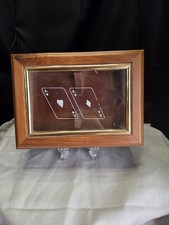 Vintage Wooden Playing Card Box With Etched Glass Card Ace Design For 2 Decks