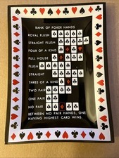 Vintage Curved Glass Dish - Rank Of Poker Hands - Ashtray - 5” X 7”