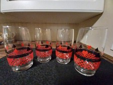 Vintage 4 Schwartz Red And Black Playing Card Tumblers, Drinking Glass 5 1/8"