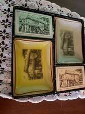 Rare Set 2 Decks Playing Cards Matching Glass Ashtrays Vintage Water Mills Old
