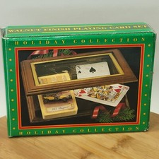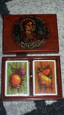 Vintage Set Of 2 Decks Of Playing Cards With Wooden And Glass Box Keeper
