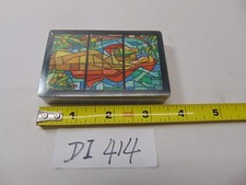 Vintage MCM playing cards - colored glass picture - sealed