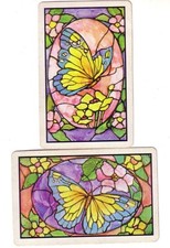 Pair Single Vintage Kem Stain Glass Butterflies - Swap Playing Cards