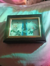 Vintage Wooden Playing Card Holder Box Golf Etched Glass Top