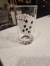 Vintage Poker Hand Glass Tumbler Full House Playing Cards Triple 7's Kings