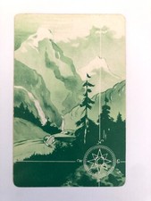 Snowy Mountain Vintage Classic Car Map Compass Retro Art Kids Game Swap Card x1
