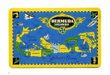 RARE YELLOW BORDER BERMUDA ISLANDS MAP. Vintage Swap Trading Card.