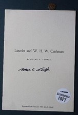 1966 Dr. Wayne C Temple AUTOGRAPHED Abraham Lincoln & WHW Cushman booklet RARE--