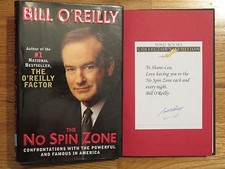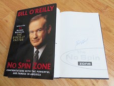 Political Commentator BILL O'REILLY signed THE NO SPIN ZONE 2001 1st Ed Book BP
