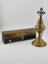 Set Of 2 Antique Islamic Middle Easter Brass and Wood Ornate Incense Burners.