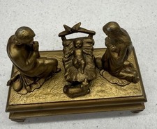 Vintage Gold Metal Nativity Music Box MCM Plays Come All Ye Faithful MCM