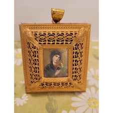 Reuge Music Box Vntg Ornate Gold Framed Madonna & Child Icon Religious Artifact