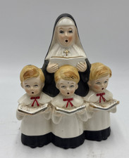 Vintage Nun Choir Boys Religious Ceramic Music Box Figurine Japan Catholic Decor