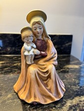 Vintage 1980 ROMAN Madonna and Christ Child Porcelain Music Box Figurine Works!