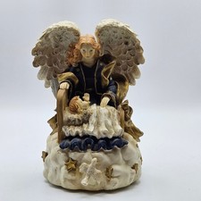 Vintage Cherub Angel with lambs white porcelain Figurine music box 7"