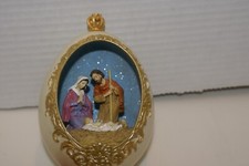 Vintage Faux OVAL EGG SHAPE with Mother Mary ,JESUS AND BABY MUSIC BOX "GLORIA"