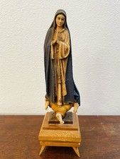 VINTAGE STATUE OF OUR LADY OF FATIMA, NON WORKING MUSIC BOX ON WOODEN BASE