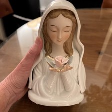 Vintage Madonna Virgin Mary Porcelain Music Box Religious Catholic