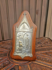 Vintage 1950s LOURDES madonna Bas relief metal wood back music box