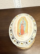 Vintage Virgin Mary Praying Ceramic Music Box 6.5" x 3.75" Hand Painted Sankyo