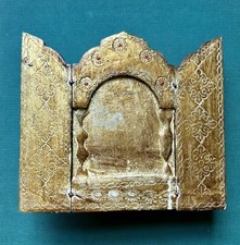 Antique Gothic Home Altar with Music Box – Virgin Mary and Child.