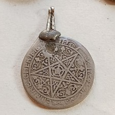 ANCIENT AMULET PENDANT MOROCCAN DAVID STAR COIN OLD ANTIQUE AUTHENTIC ARTIFACT