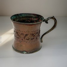 Vintage Antique Copper Etched Netilat Yadim Judaica Lavel Washing Cup