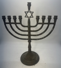 Hanukkah Hamukkia Menorah Antique RC 10.5" Height Star of David 9 Branches Brass