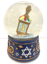 Vntg Judaica Jewish Star Of David Dreidel Music Box Snow Globe Judaism Jerusalem