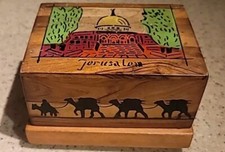 Vintage Jerusalem Wood Photo / Postcard Album, Souvenir Israel Music Box