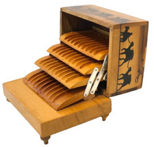 Vtg Olive Wood From The Holy Land Jerusalem Fold Out Cigarette Display Music Box