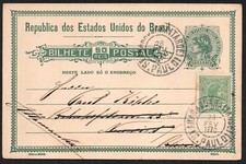 Antique BRAZIL CORREIO 100 reis POSTAL CARD BILHETE POSTAL posted in 1902