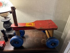 Wood Scooter Handmade Ride On Toy Ping Pong Ball Noise Maker Vintage Folk Art