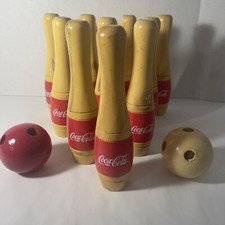 Vintage Coca-Cola Toy Time Wooden Bowling Set 10 pins 2 balls Complete Set Rare