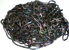 Vintage Antique Glass Dark Purple Iris AB Metallic Bugle Beads Czech 4BPI BB8-44