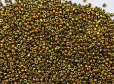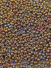 Vintage Antique Czech Glass Seed Beads Bright Metallic Gold Iris AB 9/0 C18-3