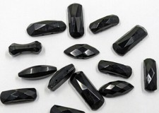 Vintage Antique 1800s Black Glass Mourning 1-1/4" Rare Oblong Beads C29-51