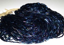 French 3/4" Long Vintage Antique Dark Blue Satin Glass Bugle Beads C8-23