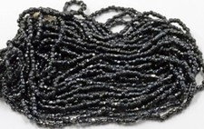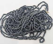 Vintage Antique Czech Glass Seed Beads 16 String Hank 9/0 Cut Hematite WB60-15